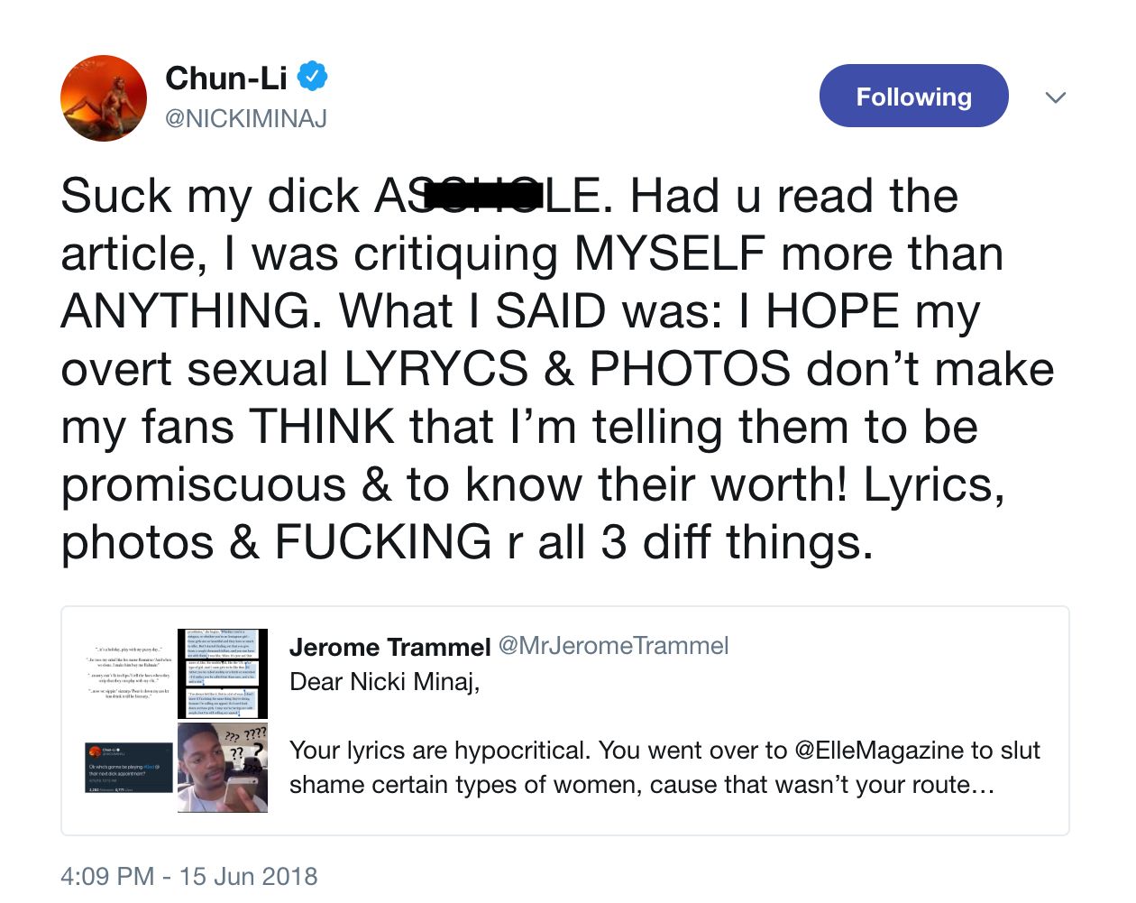 Nicki Minaj Claps Back Over Slut Shaming Backlash ( Explicit Content below )