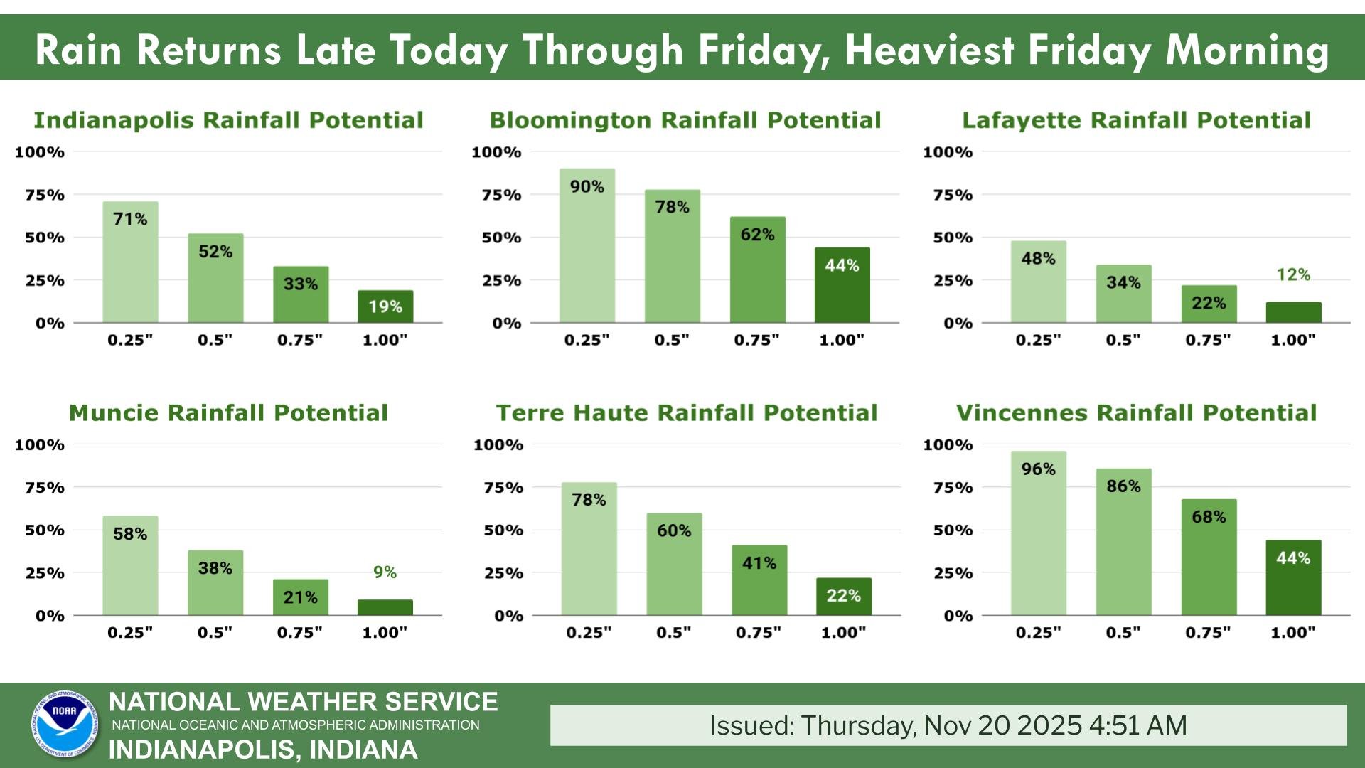 “The strongest and heavy snow amounts will be near Lake Michigan, so we’re talking the South Bend and Gary areas. Once you get south of the lake, it’s going to be much lower. We’ll have amounts in Indianapolis around an inch. A lot of that will stick on grassy surfaces instead of the roads,” said White.