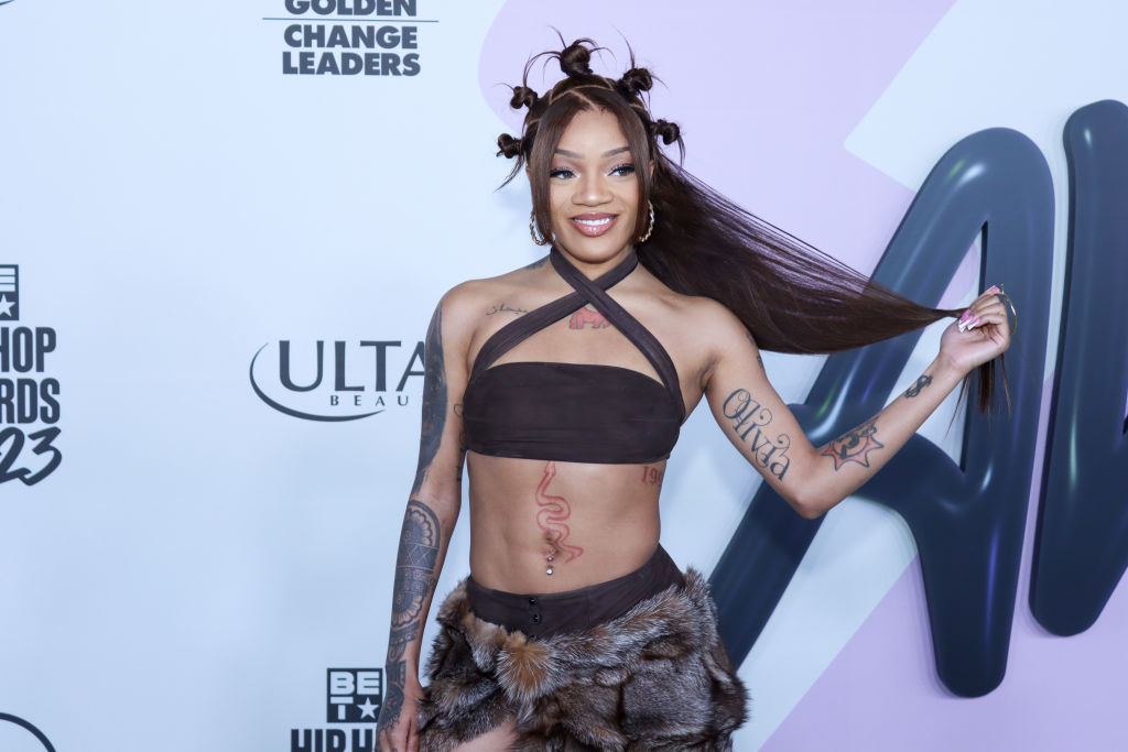 GloRilla arriving to the 2023 BET Awards at Microsoft Theater.